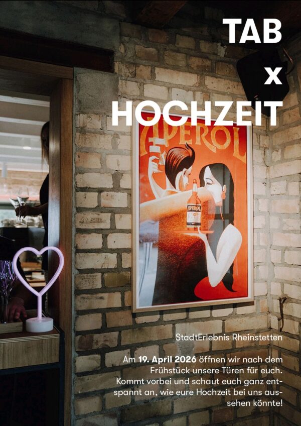 Der Tabakschuppen ist offizieller Trauort des Standesamts Rheinstetten. Standesbeamte der Stadt kommen zu uns, und führen in unseren Räumlichkeiten die Trauzeremonie durch. Rheinstetten möchte mit dieser Maßnahme die Attraktivität ihrer Trauorten steigern. Das Team vom TAB stellt zum einen die Räumlichkeiten und Infrastruktur, kann bei Bedarf einen Empfang organisieren. Eine Feier/exklusive Buchung im Anschluss wäre natürlich auch möglich.