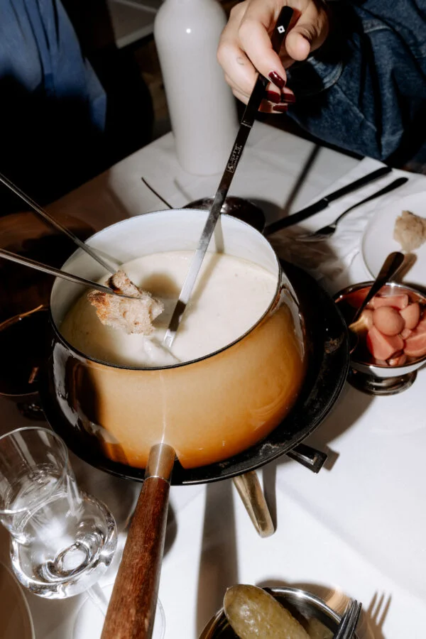 Ein klassisches Fondue mit ausgewählten Käsesorten. Gemeinsam gemütlich essen in ruhiger, geselliger Atmosphäre.